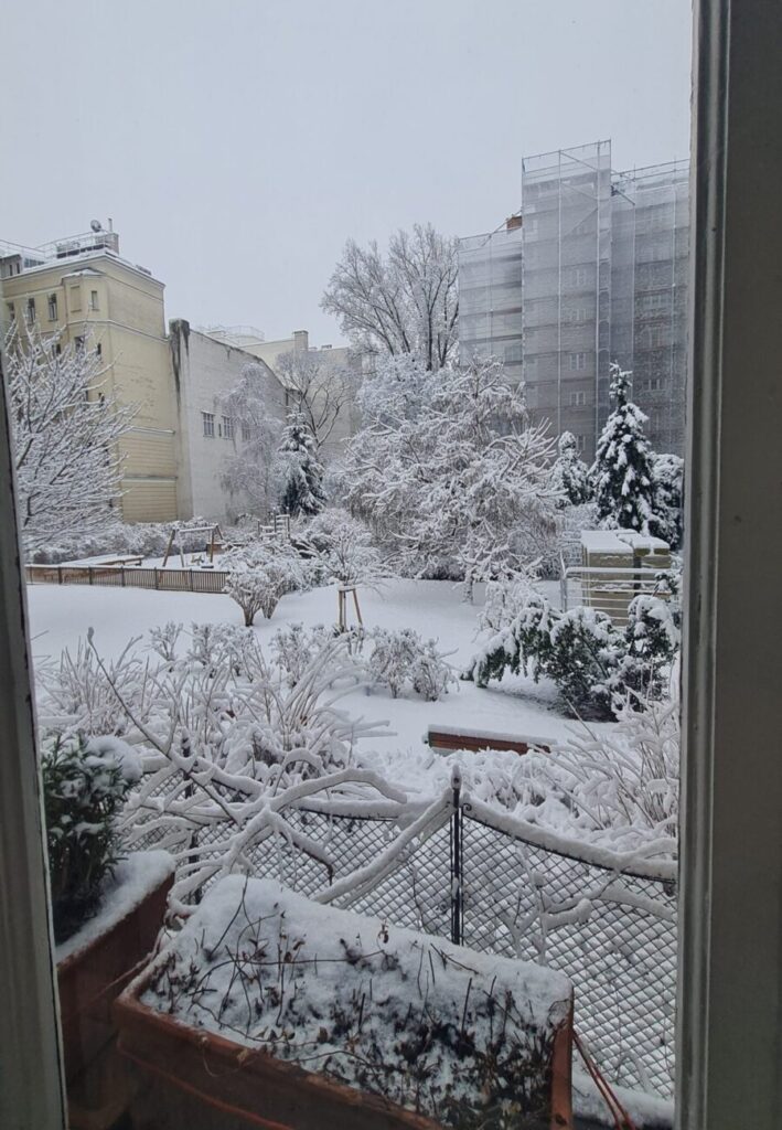 So sah es also aus, als ich heute früh aus dem Fenster gesehen habe – nicht gerade frühlingshaft. Und in Anbetracht der Tatsache, dass ich seit vier Tagen krankheitsbedingt in der Warteschleife für meine Abreise nach Kreta hänge nicht gerade aufbauend. Aber was soll’s, es sollte ohnehin noch dicker kommen: Auch morgen werde ich nicht fliegen. Denn jetzt, wo es mir wieder einigermaßen gut geht, ist meine Frau krank geworden, und ich werde sie natürlich nicht alleine im verschneiten Wien lassen. Also zum dritten Mal umbuchen – diesmal immerhin kostenlos, Aegean sei Dank.
